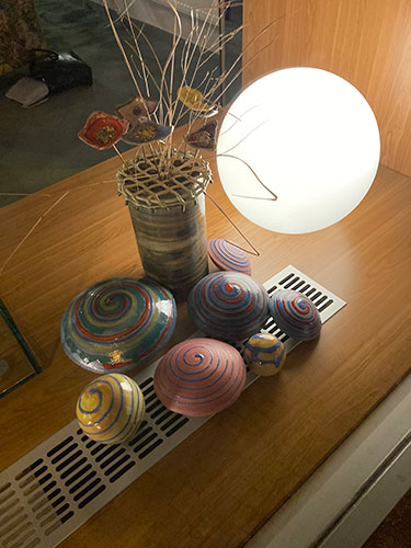 Aktuelle Dekoration mit Leihgaben von: Töpferei Regina Bernstein, Seidauer Straße 34 in 02625 Bautzen.